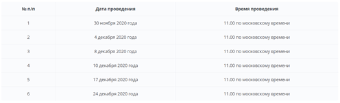 Министерство просвещения Российской Федерации в период с ноября по декабрь 2020 года проводит цикл Всероссийских открытых онлайн-уроков «ПроеКТОриЯ». На открытых уроках учащихся знакомят с самыми интересными и актуальными темами школьной жизни, современными профессиями, а также оказывают помощь в выборе своего карьерного пути. Открытые уроки проводятся в интерактивном формате на официальном сайте Всероссийского проекта «Открытые уроки» (https://открытыеуроки.рф/), в следующие сроки:
